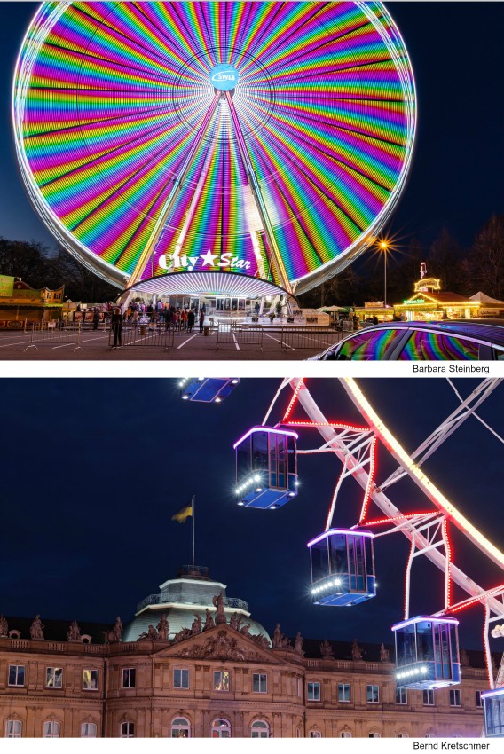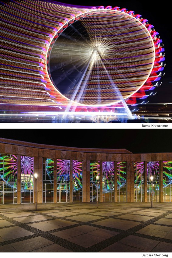 Säulenpanoramen: Riesenrad und Stillleben